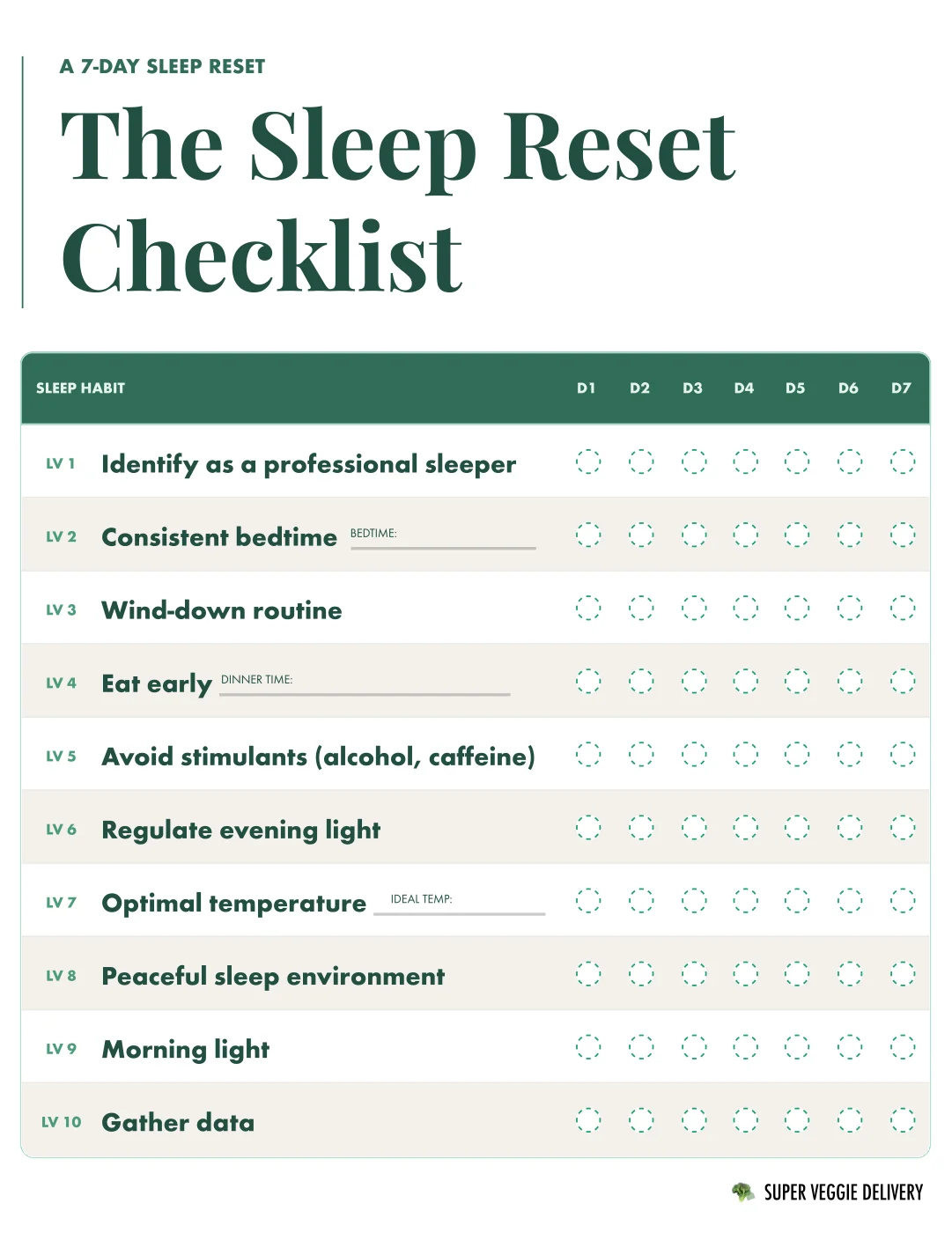 Ten habits. Seven days. Print it, follow it, repeat it.